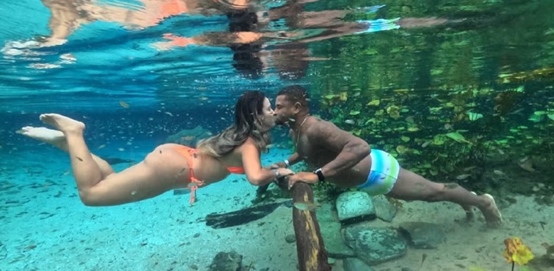 Durante a viagem à Chapada Diamantina, o casal foi visto desfrutando de um mergulho nas águas cristalinas de uma lagoa, um dos muitos encantos naturais da região. Em uma das fotos compartilhadas nas redes sociais, o ex-BBB Davi Brito não economizou em romantismo e se declarou à namorada, Adriana Paula, com a frase: “Eu e você, você e eu”, celebrando o momento especial e a conexão entre os dois.